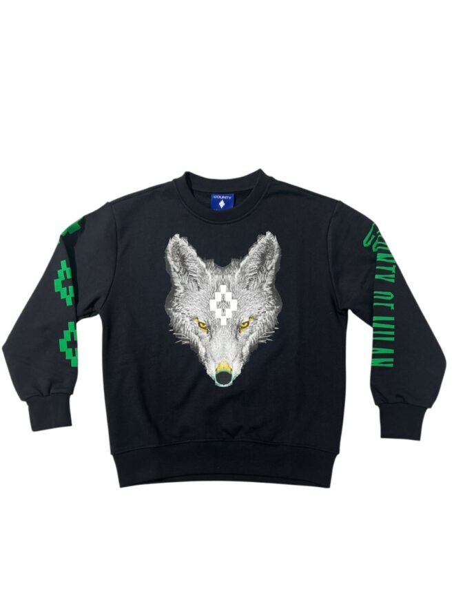 Felpa county nera a girocollo,garzata e polsini alle maniche.
