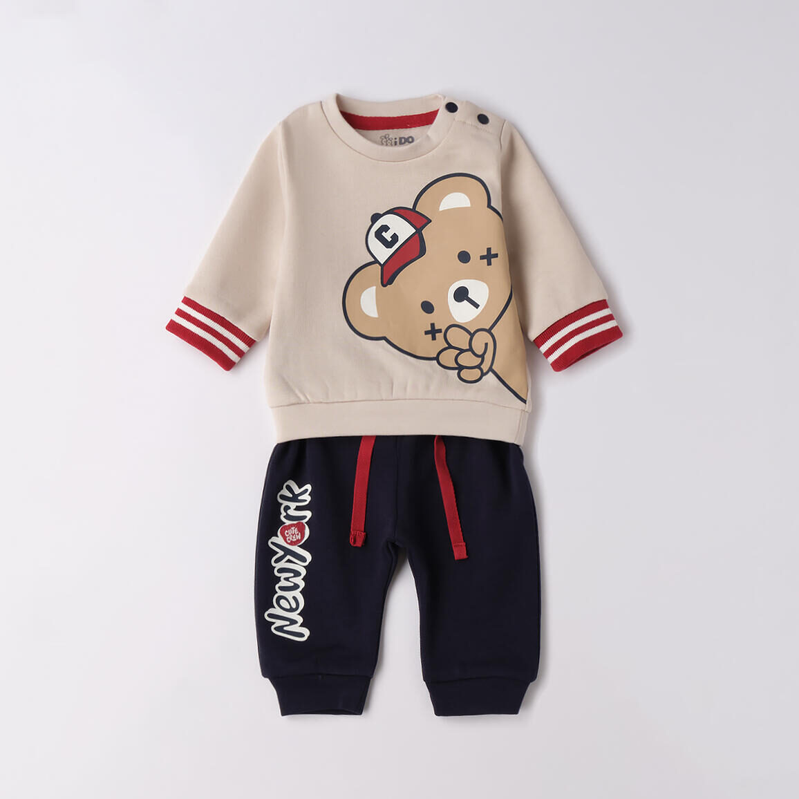 Il completo sportivo neonato iDO è ideale per garantire comfort e praticità nei mesi più freddi. Realizzato in cotone felpato invernale, mantiene il bimbo al caldo senza rinunciare alla morbidezza sulla pelle.